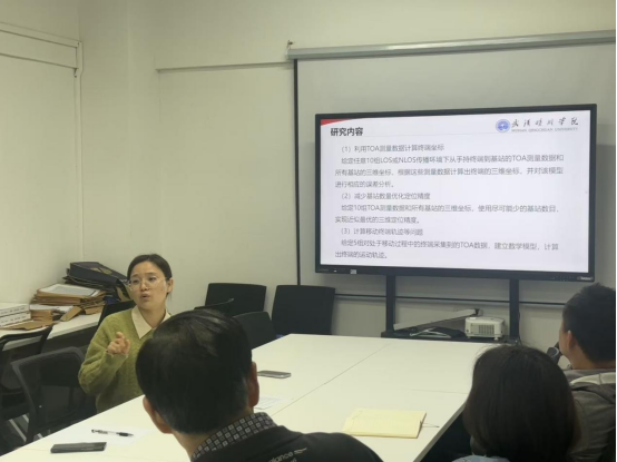 论证会上,李亚楠老师围绕项目展开全面、细致的汇报,严格按照规范流程,从研究目的及意义、国内外研究现状、研究内容方案、研究进度及预期成果四个核心方面进行深入阐述。在研究目的及意义部分,她明确指出,该研究旨在破解室内定位盲区难题,拓展无线通信基站的应用场景,为室内导航、智能仓储等领域提供技术支撑;在国内外研究现状部分,她系统梳理了当前室内定位技术的发展态势,分析了现有研究的优势与不足,凸显了本项目的研究价值与创新点;在研究内容方案部分,她详细介绍了项目的技术路线、研究方法及核心难点突破思路,确保研究方案科学可行;在研究进度及预期成果部分,她明确了各阶段时间节点与任务分工,提出了具体的研究成果形式,为项目有序推进划定了清晰路径。
