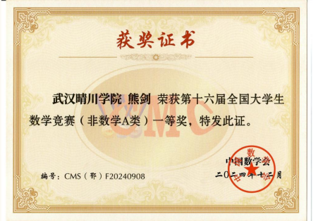 奖项:13个国家级奖项,其中非数学类一等奖2项、二等奖5项、三等奖6项